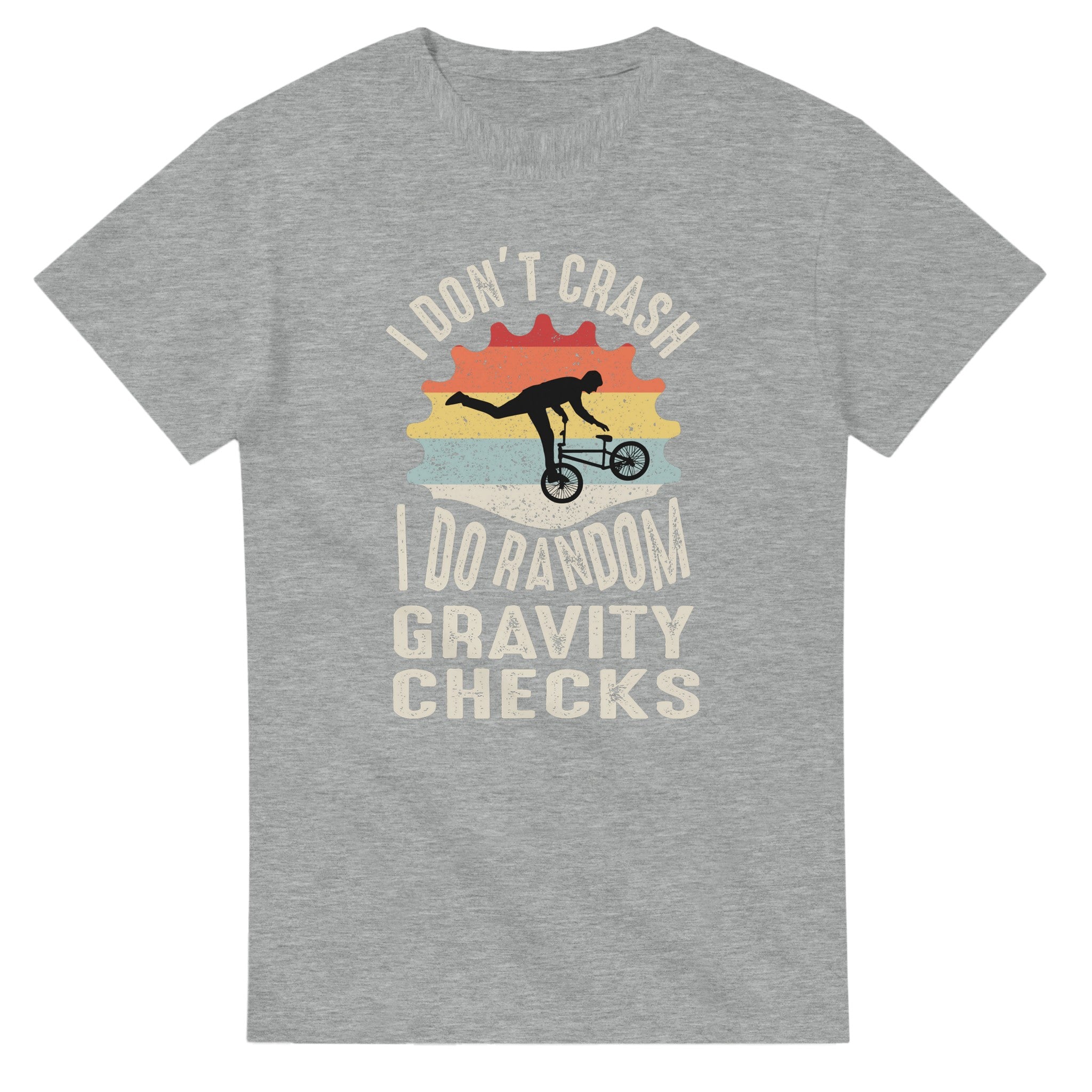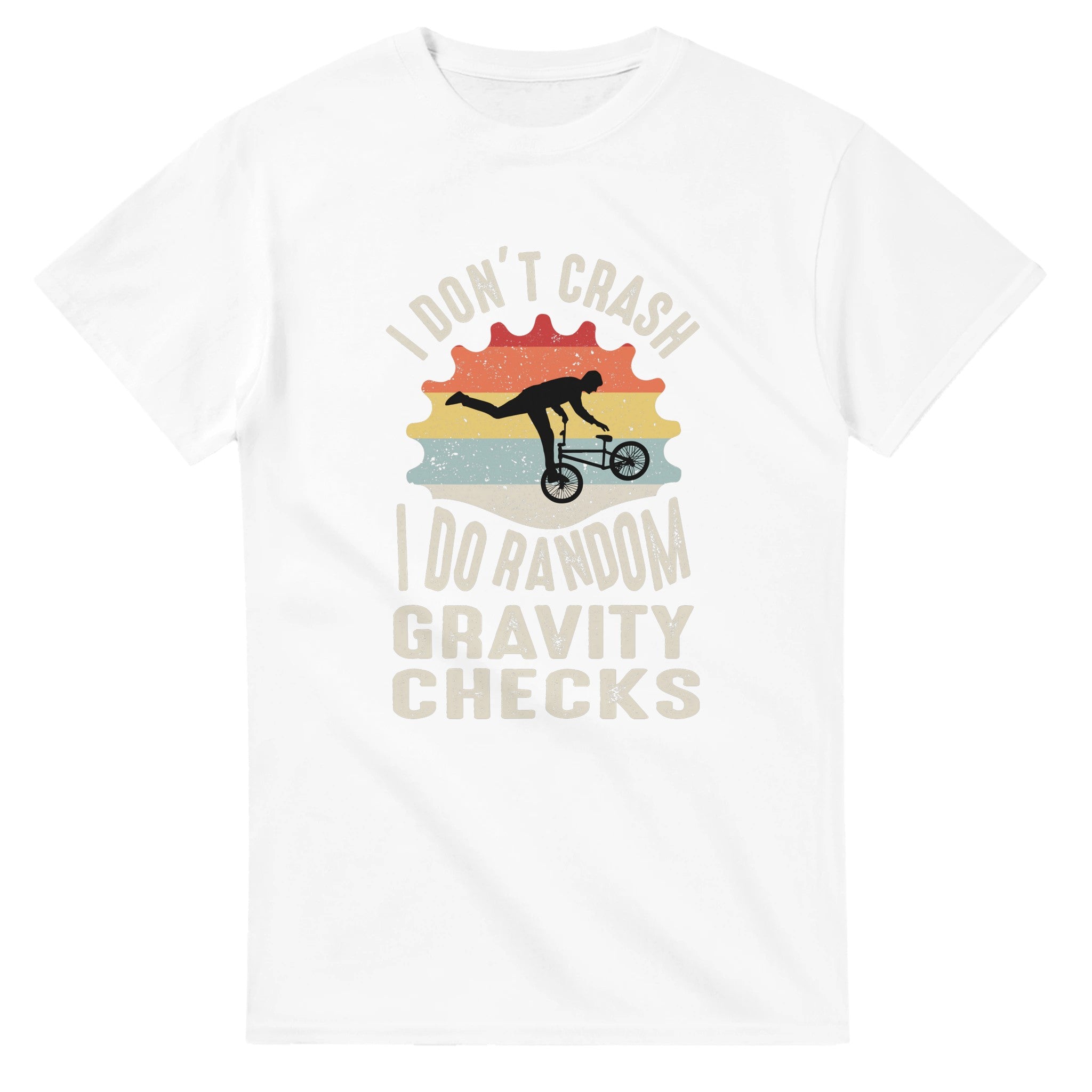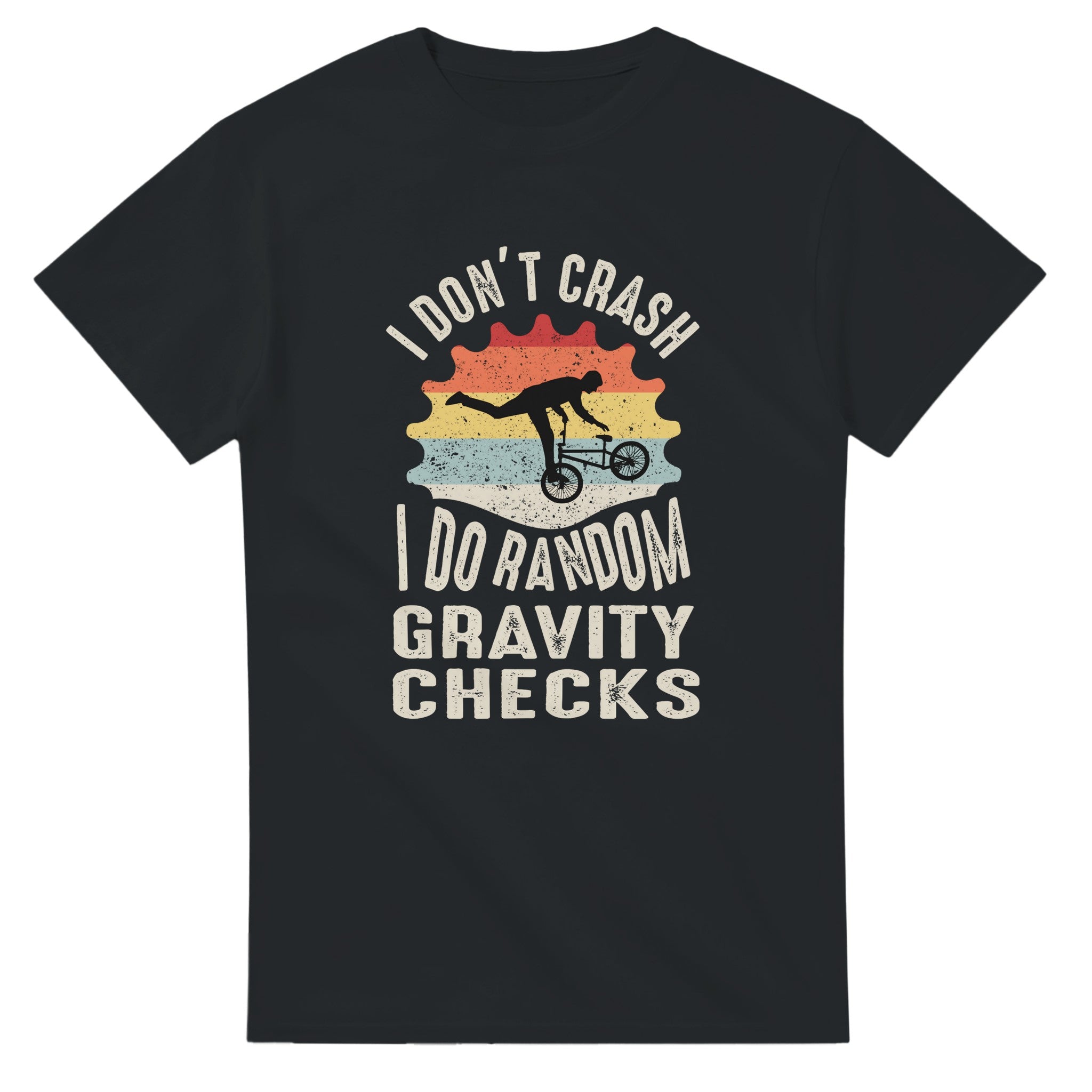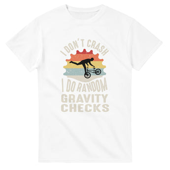 A fun and vibrant design for those who love cycling and aren't afraid to laugh at little accidents. The message "I Don't Crash, I Do Random Gravity Checks" brings a smile to all two-wheel enthusiasts.