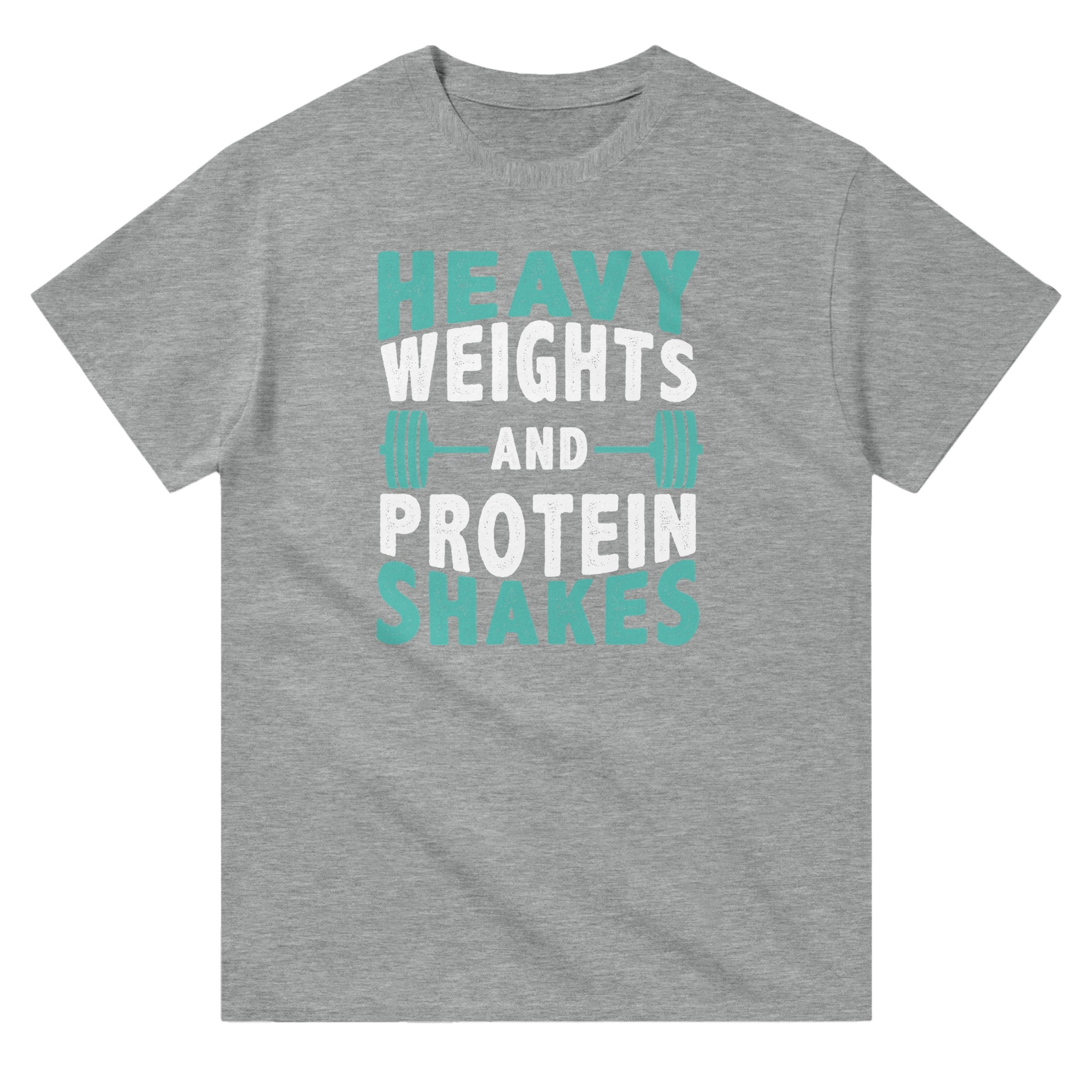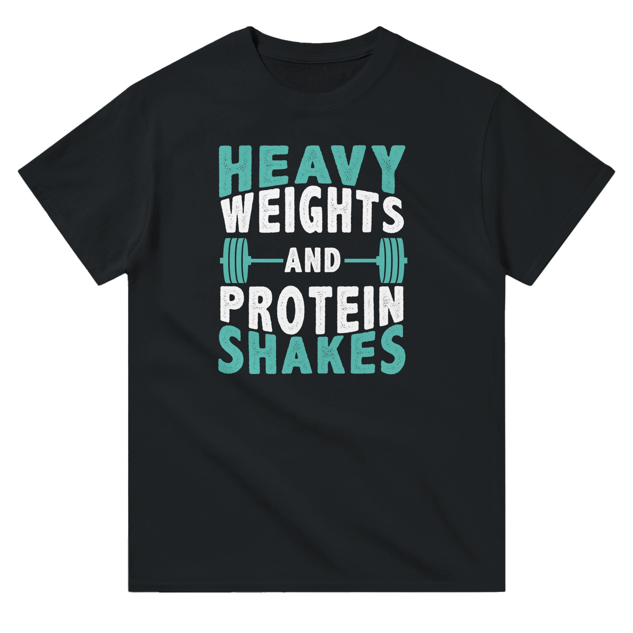 Discover the "HEAVY WEIGHTS AND PROTEIN SHAKES" T-Shirt