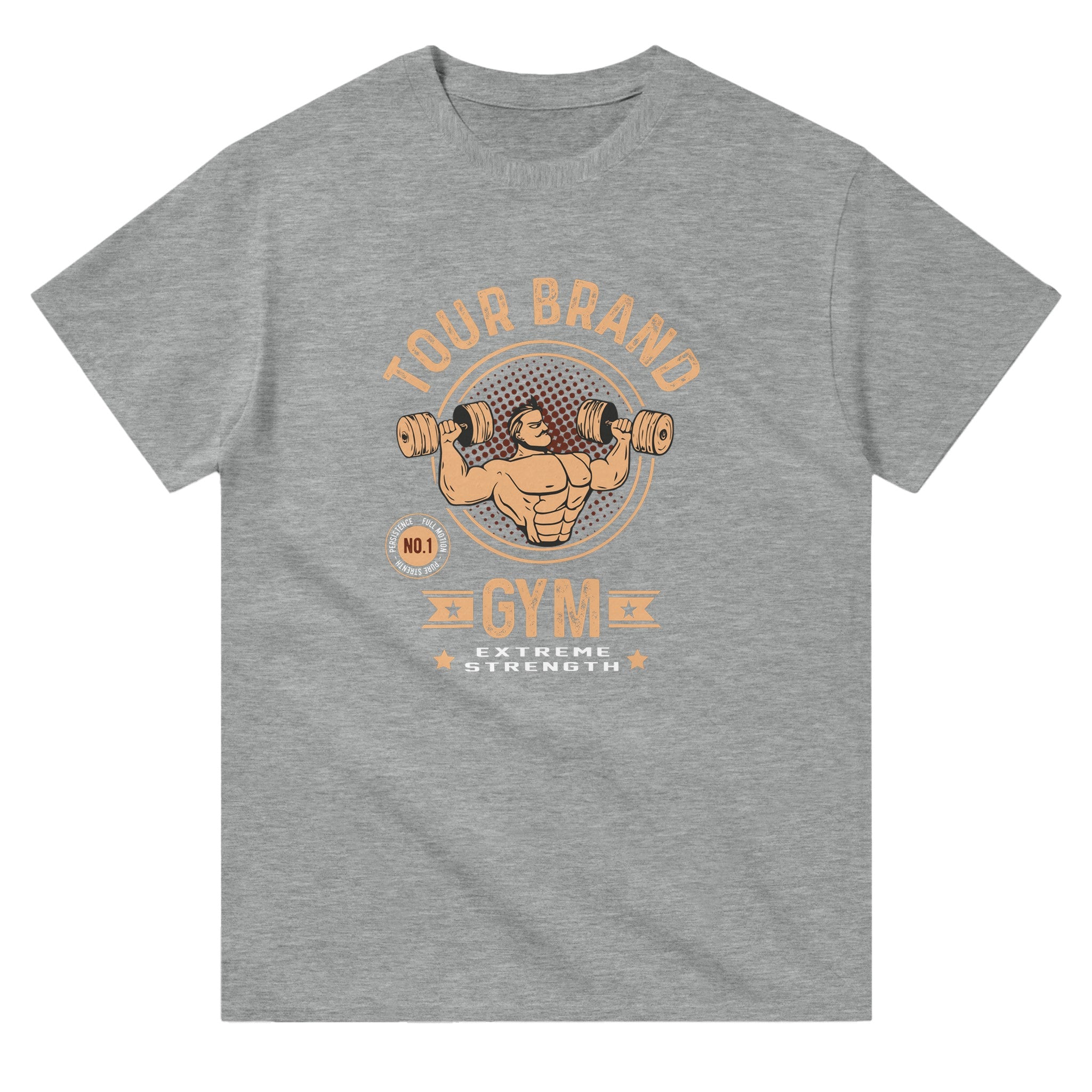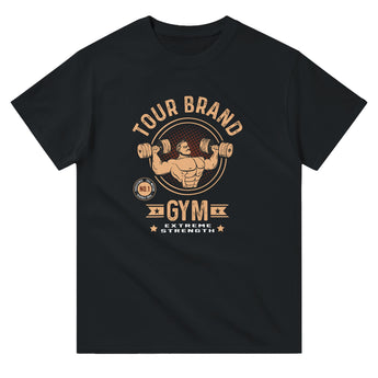 • Main Message: Above the man, the text "Tour Brand" is written in large letters, arranged in a circular arc, highlighting the identity of your fitness club.