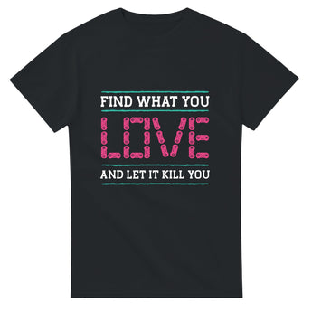 The "Find What You Love and Let It Kill You" t-shirt is perfect for those who live with passion and dedicate their energy to the things that bring them joy. With a captivating and meaningful design, this t-shirt sends a powerful message about following your dreams.