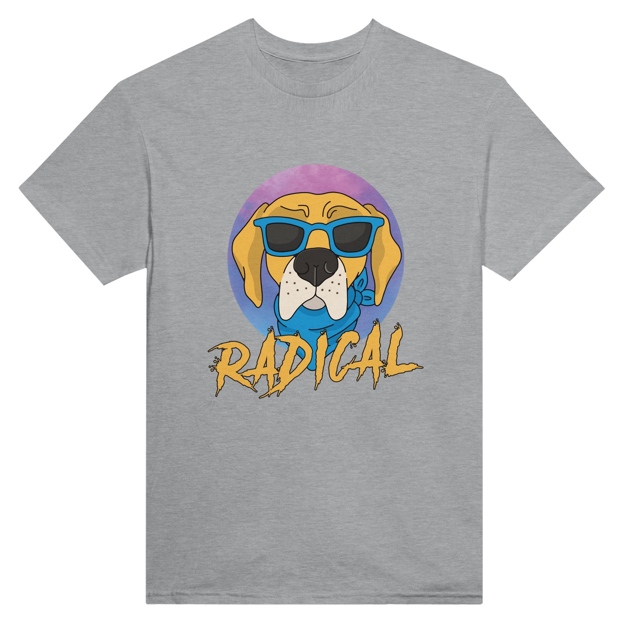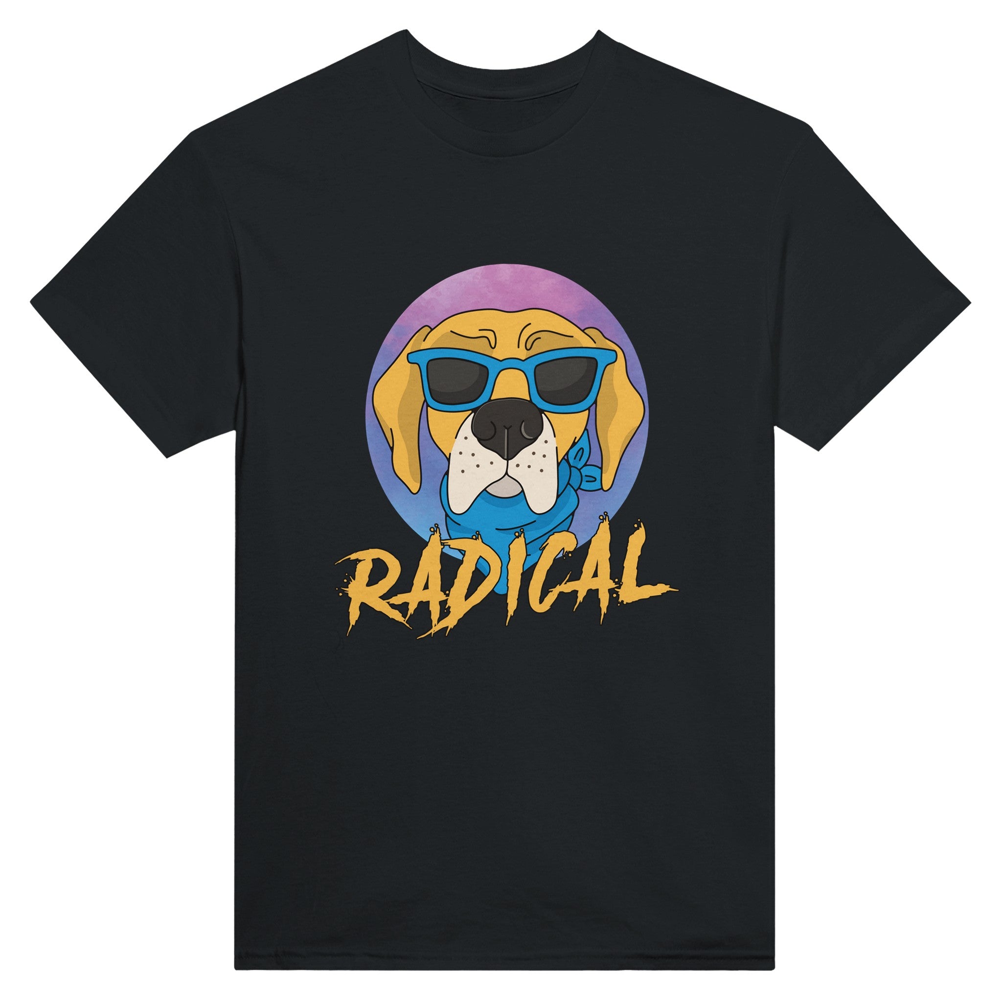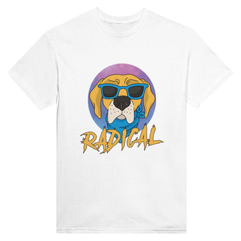 Introducing the "RADICAL" t-shirt, specially designed for dog lovers who have a cool and playful style. This unique t-shirt features an adorable design with a dog wearing glasses and the text "RADICAL", perfect for adding a touch of humor and style to your wardrobe.